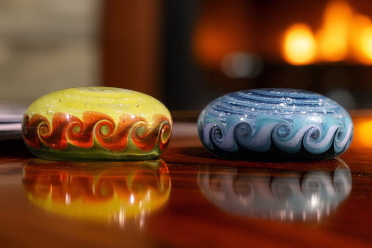 Misha is a talented memorial glass artist at Sands of Time known for her beautifully crafted cremation marbles, elegant glass cremation pendants, and distinctive touchstones. Her work includes striking glass designs such as her signature pinwheel style, along with unique shadow marbles and ribbon marbles that showcase intricate patterns and vibrant color within the glass. Misha creates both wearable memorial jewelry and meaningful keepsakes featuring distinctive design elements such as four-leaf clovers and her recognizable pinwheel patterns. Each piece is carefully handcrafted to respectfully encase cremation ashes, resulting in meaningful memorial artwork that honors the memory of both loved ones and cherished pets.