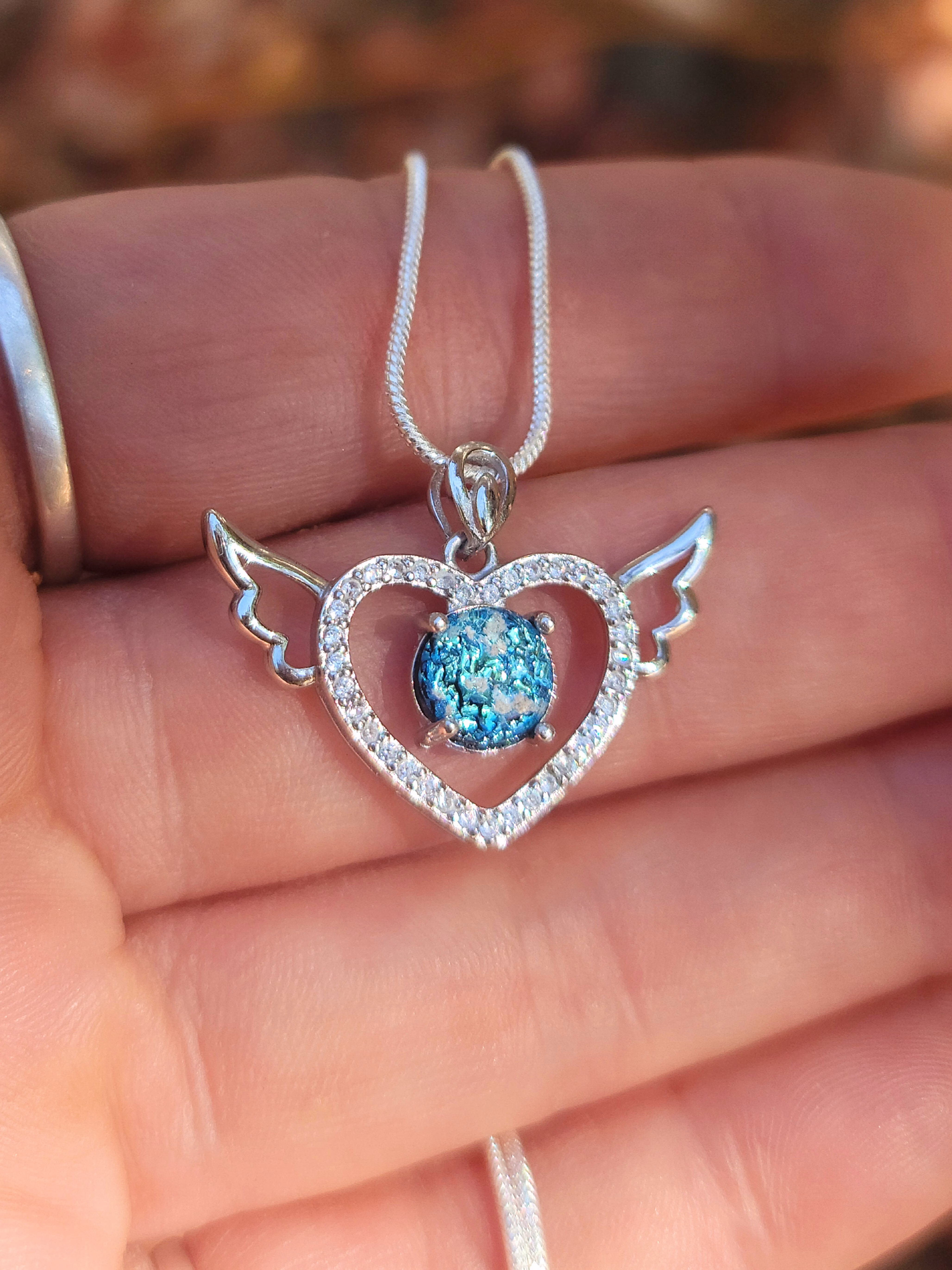 Our Angel Heart Cremation Pendant offers a touching and symbolic way to keep your loved one close to your heart. The dichroic glass stone at the center of the pendant is infused with cremation ash and then encompassed by a heart-shaped border of cubic zirconia. Each pendant is custom-made, ensuring a unique and personalized tribute.