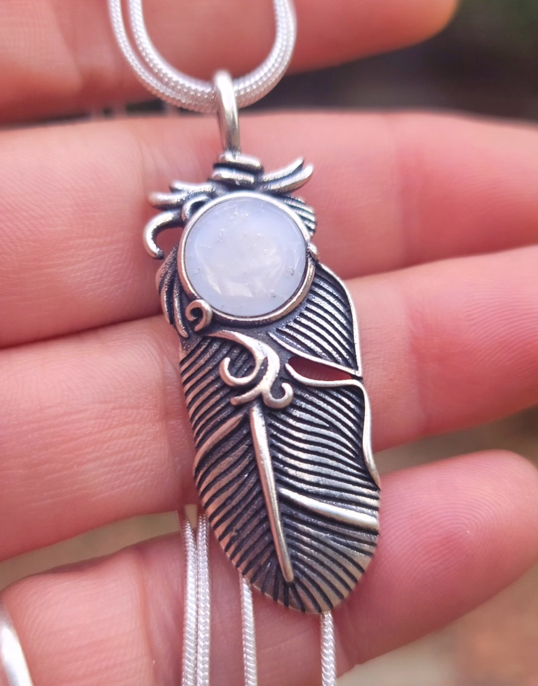Our unique Boho Feather Cremation Pendant is a meaningful way to remember your loved one. This pendant features an intricate feather design, with a small amount of cremation ash carefully infused into a dichroic glass stone. Feathers are symbols of freedom and courage making it a fitting tribute to your loved one’s life and legacy. This pendant is made with high-quality materials, ensuring both its durability and longevity.