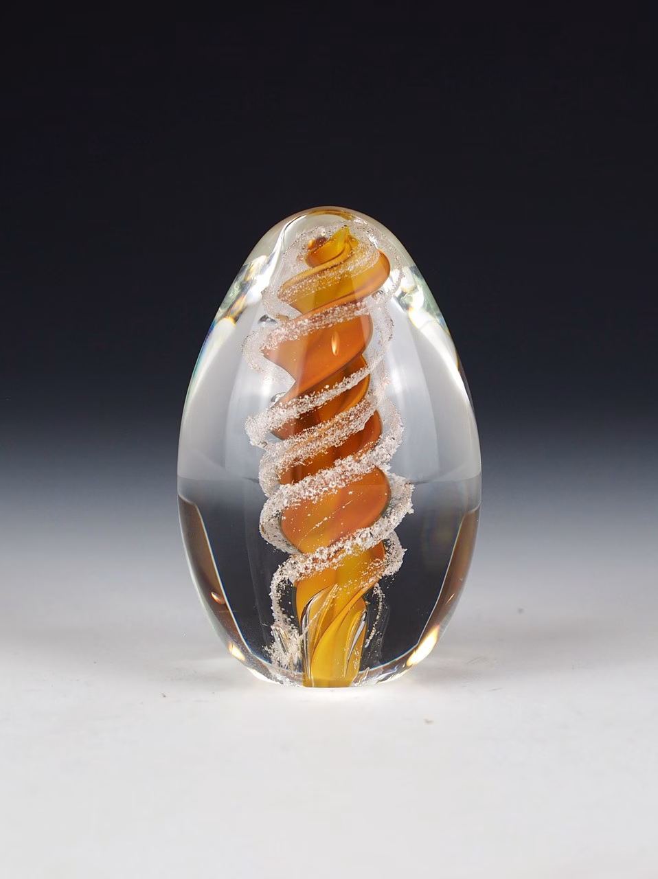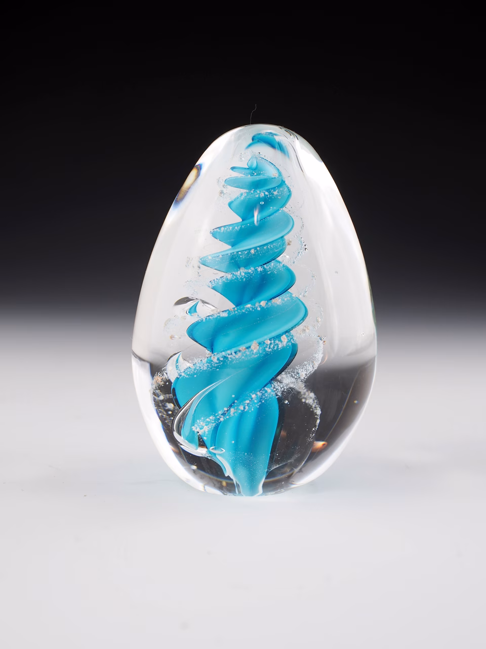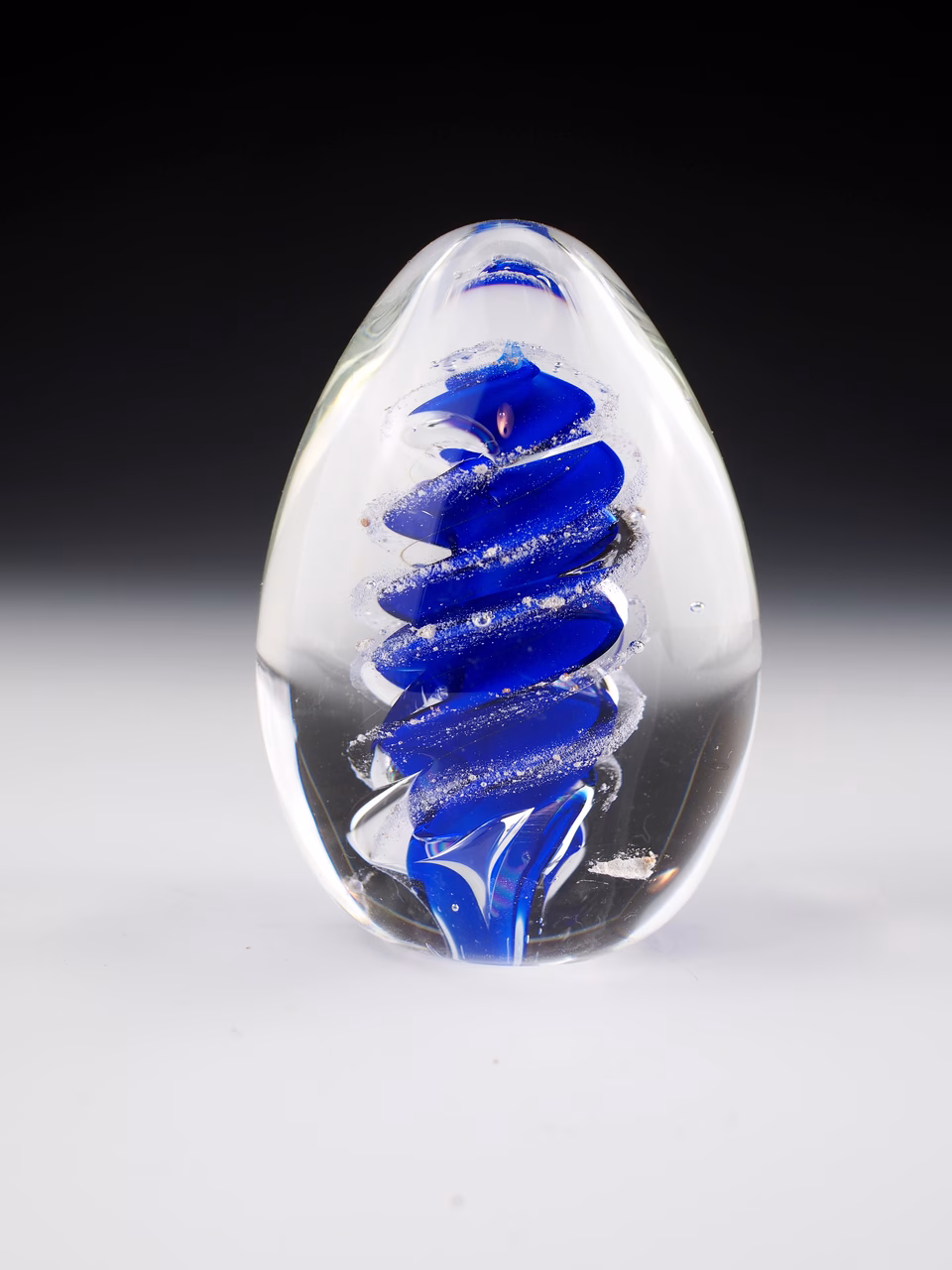 These lovely Eternity Eggs are a unique way to honor the memory of your loved one. Each egg features a colorful spiral design infused with a small amount of cremation ash. It’s an excellent choice for displaying on your nightstand or side table, adding a touch of artistic beauty to your space. This free-standing item is made with a flat bottom, but an optional engraved base may be added from the drop-down menu.