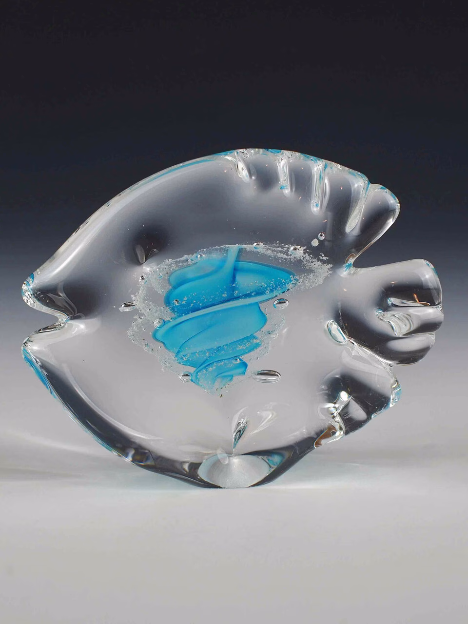 These adorable glass fish are a meaningful way to remember your beloved fisherman. Each memorial is infused with a small amount of cremation ash during the glassmaking process. The ashes can be seen in this piece spiraled together around the colored glass ribbon. This free-standing item is made with a flat bottom, but an optional engraved base may be added from the drop-down menu.