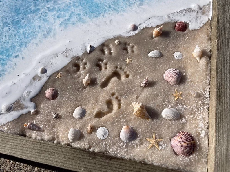 “I started in 2018 after a trip to Florida. I was inspired by the tranquility of the sea and wanted to recreate it for inside the home. I began making memorials after my Pop-Pop passed away. He loved Florida, and I figured there was no better way to memorialize him than with a recreation of the beach. Since then, I have made hundreds of memorials, and I absolutely love what I do.” 💗