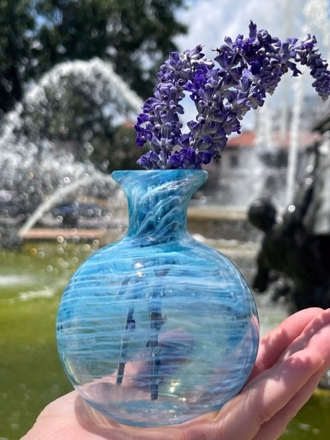 Honor the memory of your loved one with a stunning commemorative bud vase. Each handcrafted vase features your loved one’s ashes carefully swirled into the glass while it is molten hot, creating a unique and personalized keepsake. Changing the flowers regularly can be a surprisingly therapeutic experience. Perfect for displaying in your kitchen, office, or side table.