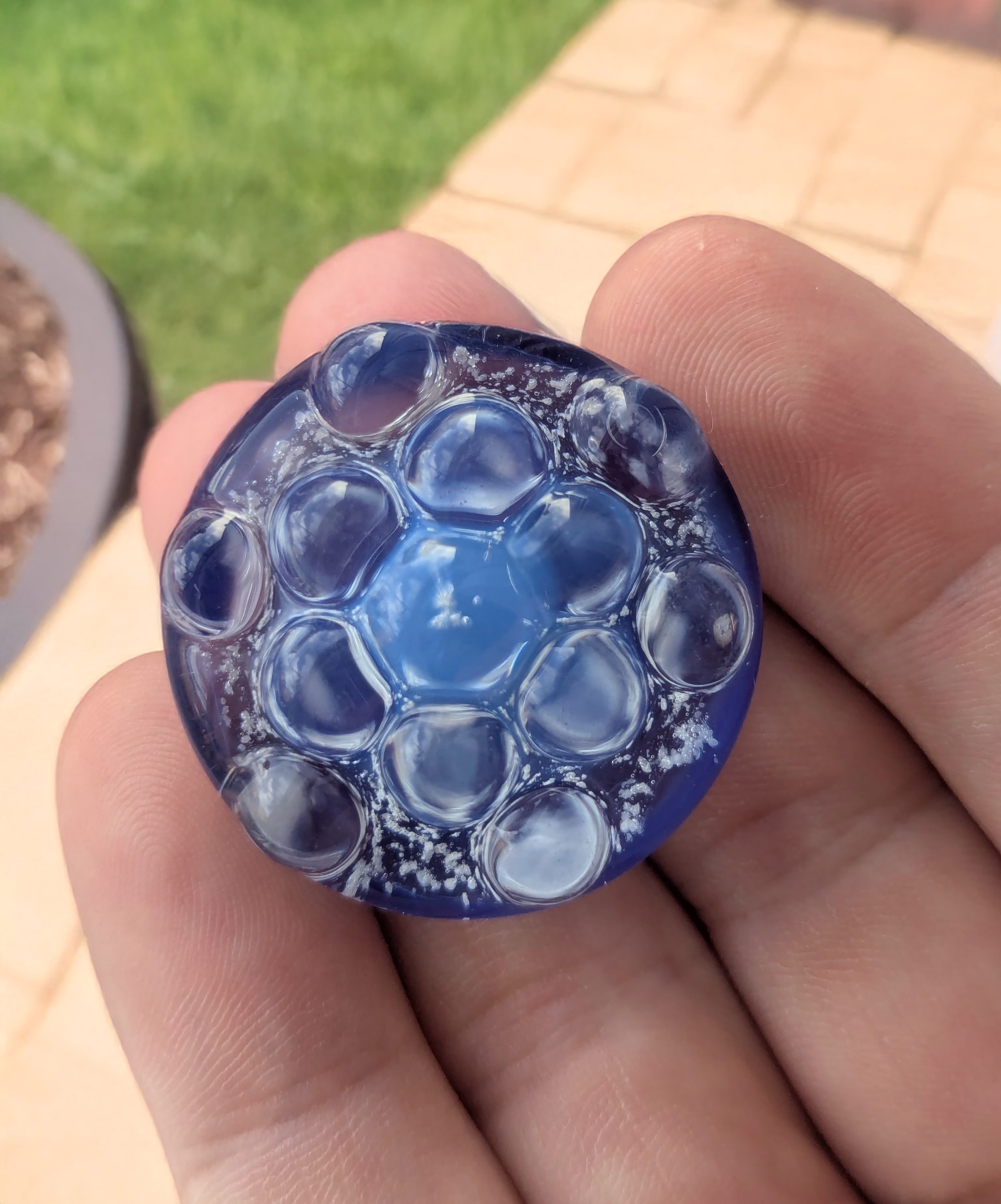 Each piece is carefully flameworked by hand on the torch in Gregs own lampworking studio. After screening out the finest ash for each encasement, Greg uses borosilicate color and clear glass to achieve stunning optical effects in glass that allow you to see the ashes scattered throughout the layers of glass.