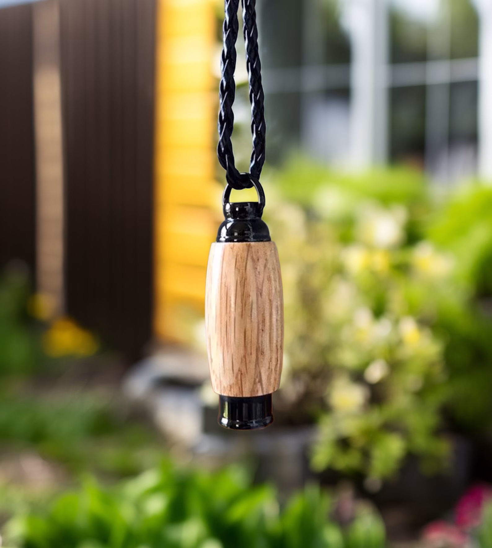 These original urn pendants offer a natural way to keep your loved one close. Each pendant features a black stainless steel core with a hand-turned laminate wood shell. As each piece is individually made, you may see subtle variations from the displayed pendant shown, adding to its unique character. Each pendant features a discreet screw-off bottom that opens to reveal a small hollow chamber designed to hold the cremated remains. Also available as a keychain.